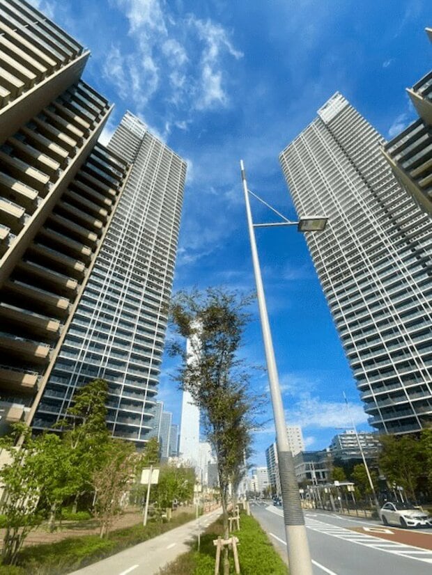 地上50階建ての超高層ツインタワー「HARUMI FLAG SKY DUO(晴海フラッグ スカイデュオ)」の入居が始まったのは、2025年9月19日だった。前回の取材で「HARUMI FLAG」の街を訪れたのは、同年の4月。ツインタワーは建設中で、完成していたのは板状棟※だけ。そのため街には人影もまばらだった。