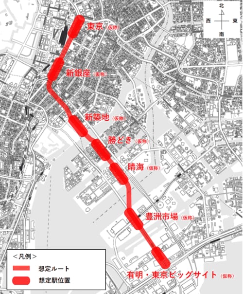 ただ、現在進められている「都心部・臨海地域地下鉄構想」での地下鉄新路線が誕生すると、東京、新銀座、新築地、勝どき、晴海、豊洲市場、有明・東京ビッグサイトの7駅(いずれも仮称)が新設される。
