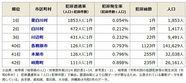 【市区町村別】岐阜県の治安ランキング(令和6年)