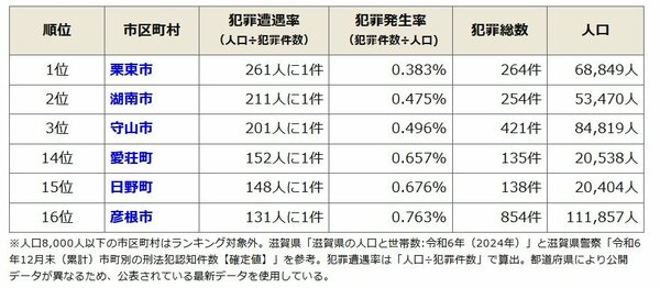【市区町村別】滋賀県の治安ランキング(令和6年)