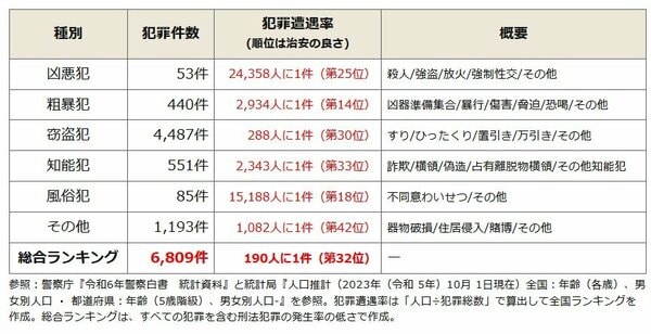 全国治安ランキングで愛媛県は32位
