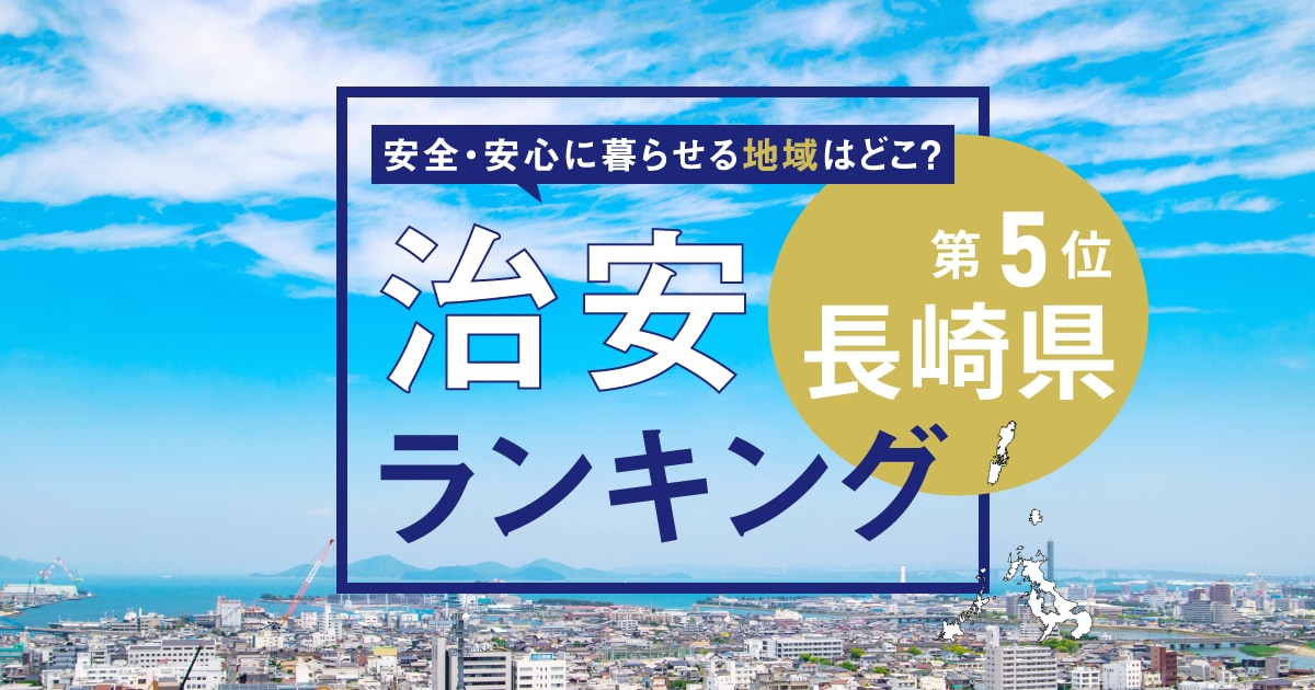 最新の統計データによると、長崎県の治安の良さは全国で5位(2025年時点)。335人に1件の確率で事件が発生している。この治安ランキングは犯罪遭遇率を基に算出されており、順位は年ごとに変動する。47都道府県の治安ランキング順位はダイヤモンド不動産研究所のページで解説されている。