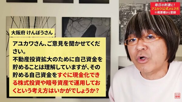 また、暗号資産に関しては、私は非常に否定的です。私自身、過去に暗号資産で多額の損失を出した苦い経験があるからという理由もありますが、それ以上に、日本の銀行の多くは依然として暗号資産を正当な資産として評価してくれません。「明日には円に替えられる」と主張しても、融資審査においては評価ゼロと見なされるケースが多々あります。