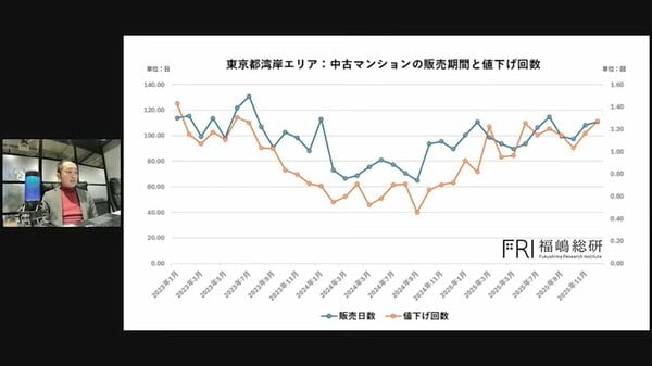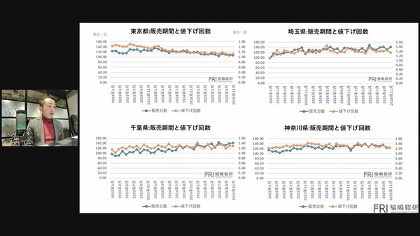 端的に申し上げますと、東京以外のエリアについては、どの地域も販売期間が延びているか、あるいは値下げ回数が増加、もしくは横ばいの状態にあります。このデータから言えるのは、一都三県の中でも東京を除くエリアでは、やや物件が売りづらい状況になりつつあるということです。