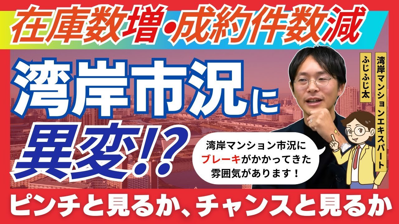湾岸エリアのマンション成約件数が伸び悩み、在庫が増加し始めた。これを市場のブレーキと見るか、あるいはチャンスと見るか?湾岸マンション専門家のふじふじ太氏が、自身のYouTubeチャンネルで解説した「実需層が今こそ動くべき理由と今後の展望」をお伝えします。