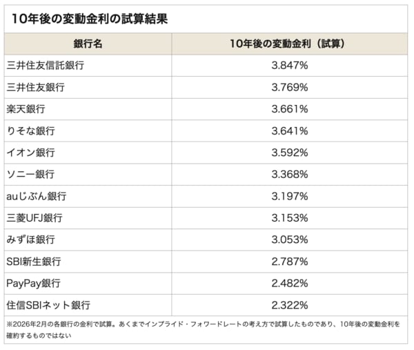 住宅ローン10年後の変動金利を試算した結果(2026年2月)