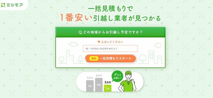 2022年2月28日公開(2026年2月24日更新) ダイヤモンド不動産研究所 ダイヤモンド不動産研究所 100年以上の歴史をもつ出版社・ダイヤモンド社が運営する、不動産メディア「ダイヤモンド不動産研究所」の編集部です。徹底した消費者目線で、誰にでも分かりやすく、不動産について分析・解説します。 YouTube:https://www.youtube.com/@ダイヤモンド不動産研究所 X(旧Twitter):https://x.com/df_editors FaceBook:https://www.facebook.com/diamond.fudosan.jp »バックナンバー一覧 引越し一括見積もりサイト11社を徹底比較! おすすめはどれ? 利用方法や注意点、営業電話の有無、メリット・デメリットを解説! この記事を読む 引越し一括見積もりサイト一覧 SUUMO引越し 引越し侍 引越し侍 ズバット引越し比較の画面 引越し一括見積もり 引越しラクっとNAVI ミツモアの引越し見積もり DOOR引越し見積もり 「引越し価格ガイド」 引越し一括見積もり LIFULL引越し 価格ドットコム 引越し見積もりEX 引越し一括見積もり 単身引越ナビ 単身引越ナビは定額制 エネチェンジ この記事を読む