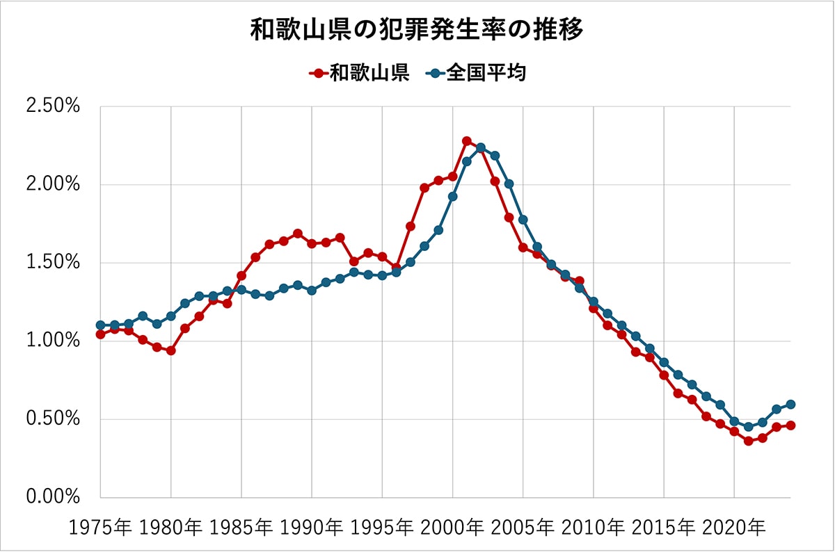 2025年12月16日公開(2025年12月16日更新) ダイヤモンド不動産研究所 ダイヤモンド不動産研究所 100年以上の歴史をもつ出版社・ダイヤモンド社が運営する、不動産メディア「ダイヤモンド不動産研究所」の編集部です。徹底した消費者目線で、誰にでも分かりやすく、不動産について分析・解説します。 YouTube:https://www.youtube.com/@ダイヤモンド不動産研究所 X(旧Twitter):https://x.com/df_editors FaceBook:https://www.facebook.com/diamond.fudosan.jp »バックナンバー一覧 和歌山県の治安ランキング! 犯罪が少なく安全に暮らせる市区町村はどこ?【2025年版】 この記事を読む 和歌山県の犯罪発生率の推移(全国平均、各都道府県の比較)50年分 治安がもっとも良い市区町村は「北山村」 治安がもっとも悪い市区町村は「白浜町」 住居侵入 住居侵入 住居侵入 この記事を読む